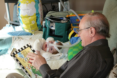 Victoria's dad has one of those voices. I'm not sure if it's the deep pitch or the British accent or both, but whenever he reads stories to any of his three grandchildren they listen intently to every word, intonation, and sound. GrandPa was in town last weekend and Gwendolyn loved every minute of it — especially the story time on Sunday morning.
